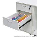 - Large top drawer includes removable cover to create additional workspace and provide left-side support