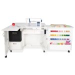 One of 3 signature sewing cabinets from Kangaroo Sewing Furniture, Wallaby Electric is a dynamic, full-size sewing cabinet ready to elevate your sewing and quilting adventures! Wallaby Electric features a programmable dual rail electric lift system and dynamic storage solutions for your serger, thread and other sewing notions! Wallaby’s expansive worksurface is highlighted by a foldable rear quilt leaf to keep large quilting projects from falling to the floor! Keep all of your sewing materials in immediate reach, and add style, comfort and convenience to your growing sewing studio!